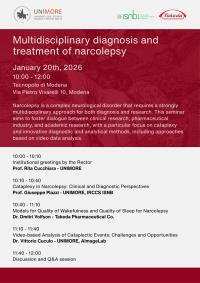 A multidisciplinary seminar dedicated to narcolepsy and the study of innovative diagnostic methods will take place on January 20, from 10:00 a.m. to 12:00 p.m., at Modena Technopole