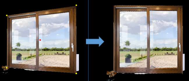 Questo task ha come obiettivo il rendering del nuovo infisso sull’immagine e conseguente sostituzione dell’infisso candidato. Tale operazione consiste in una trasformazione omografica di uno dei due infissi. Tipicamente l’infisso selezionato come sostitutivo verrà proiettato sul piano immagine, previa trasformazione omografica, in modo da riempire lo spazio identificato dalla precedente operazione di segmentazione e sovrapporsi all’infisso precedente.