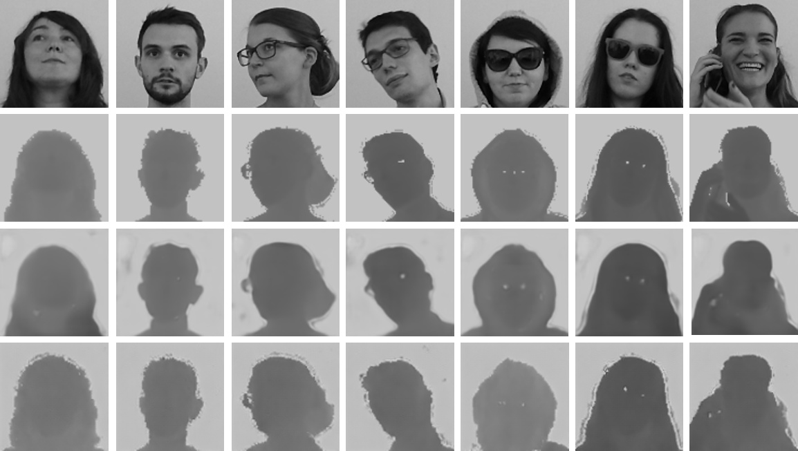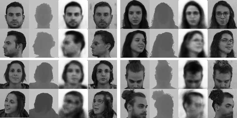 Finally, we note that our approach is able to produce overall accurate views of the generated facial depth maps, preserving the shape of the face and the garments.
