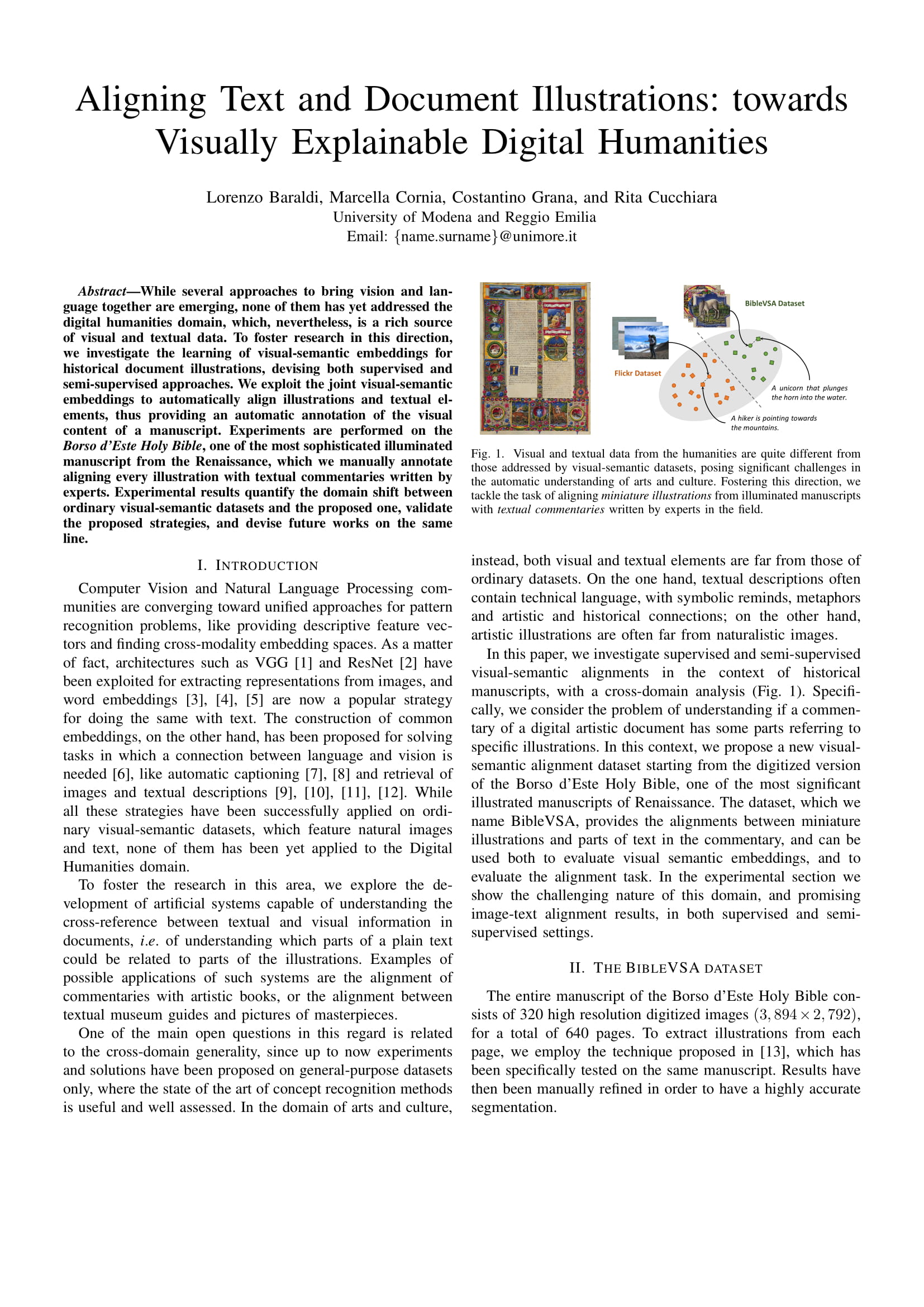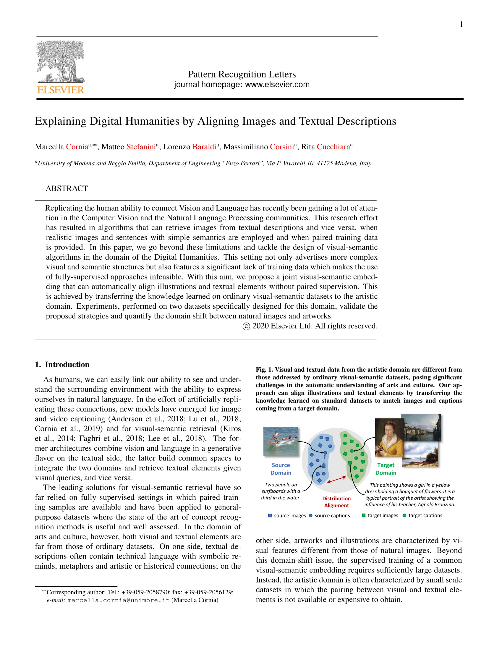 1 Cornia, Marcella; Stefanini, Matteo; Baraldi, Lorenzo; Corsini, Massimiliano; Cucchiara, Rita "Explaining Digital Humanities by Aligning Images and Textual Descriptions" PATTERN RECOGNITION LETTERS, vol. 129, pp. 166 -172 , 2020 | DOI: 10.1016/j.patrec.2019.11.018 Journal