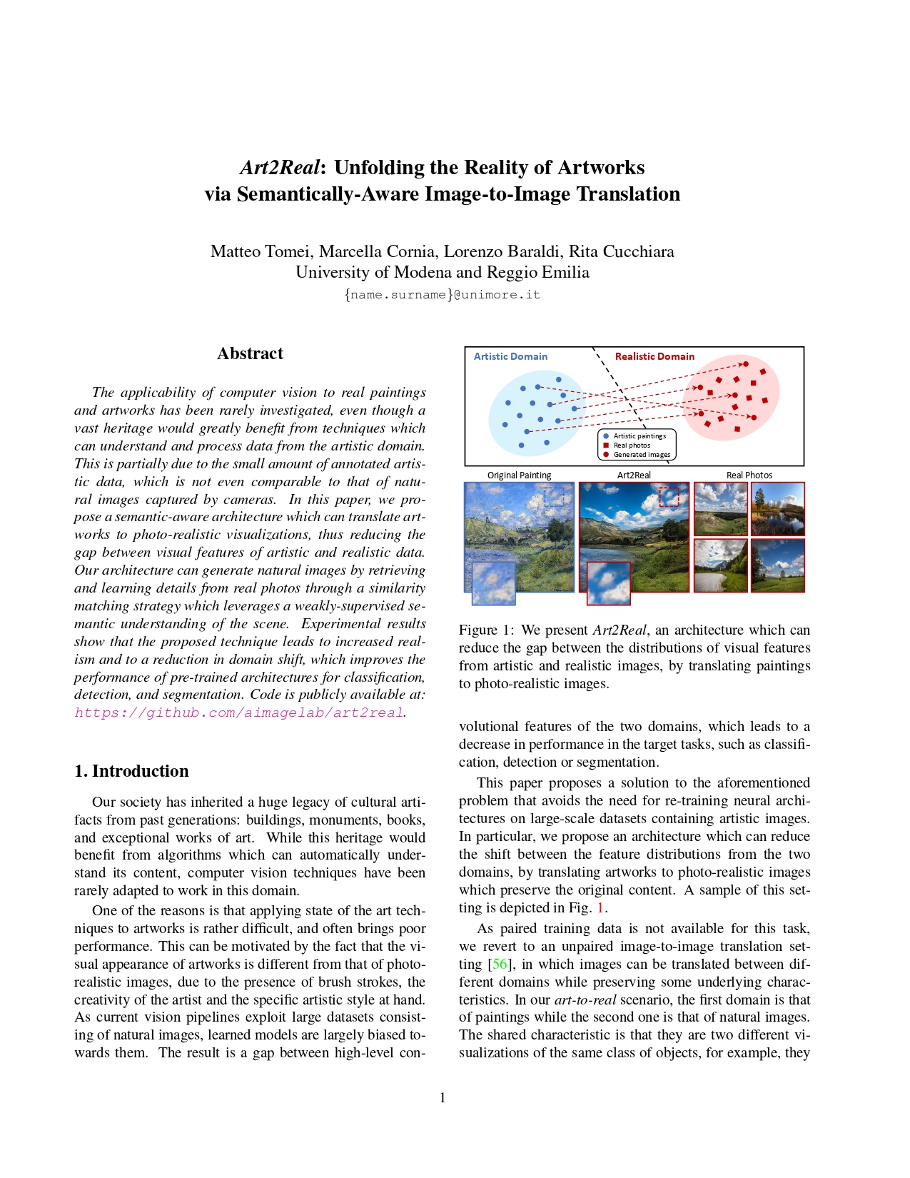 "Art2Real: Unfolding the Reality of Artworks via Semantically-Aware Image-to-Image Translation"